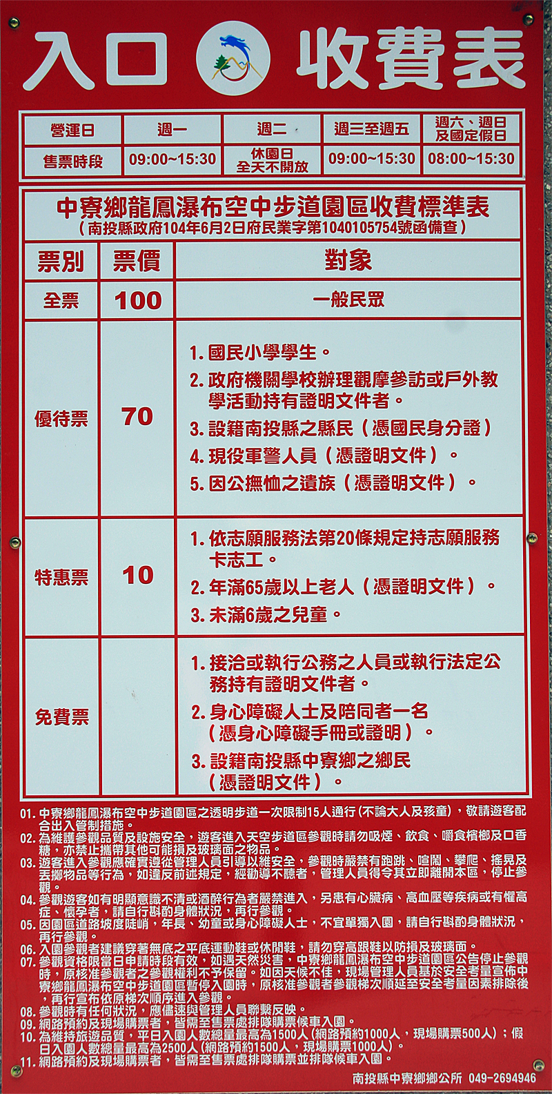 南投中寮龍鳳瀑布空中步道網路預約: http://longfong.joliu.gov.tw